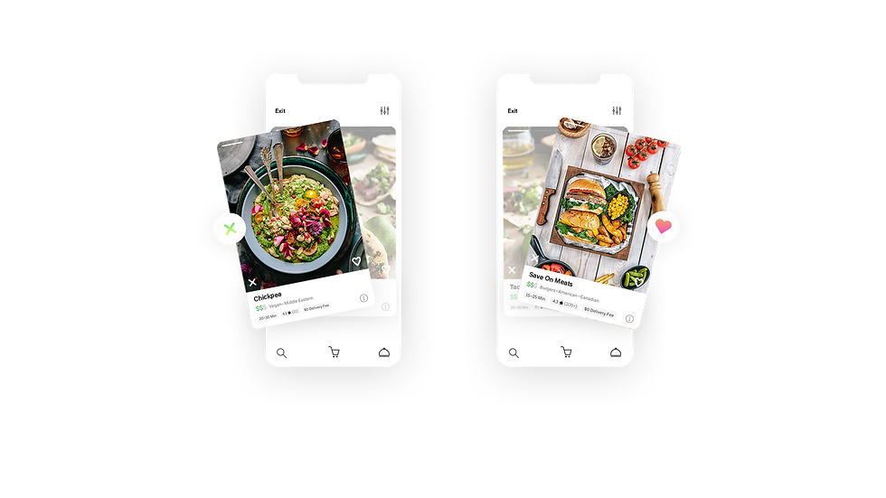 Seeing helps deciding - “Swipe to discover” feature helps users choose their next meal by swiping left or right on dishes from the best restaurants nearby and makes the decision process easier.